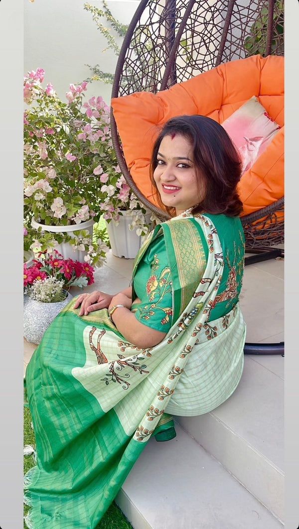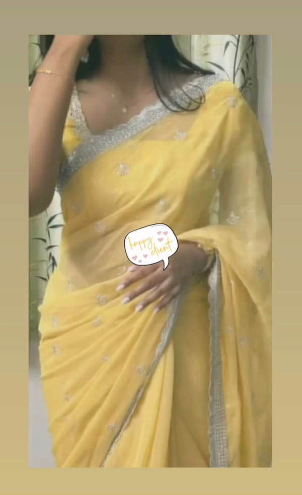 Beautiful soft tissue saree with handwork