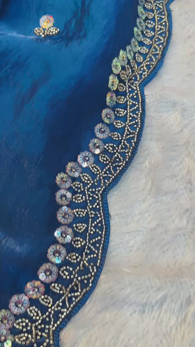 Fabric - Fancy Space Silk Fabric Saree With Fancy Handwork (Bids) & Sequence Work With Fancy Bids Work Pallu & Border & Work Blouse