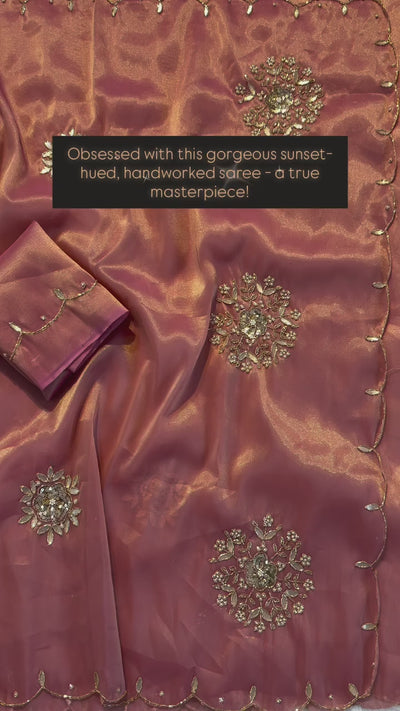 Pure soft two tone tissue with handwork n motiwork with gota Patti n sequence work with blouse