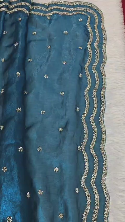 Handwork Shimmer Satin Saree with Readymade Blouse